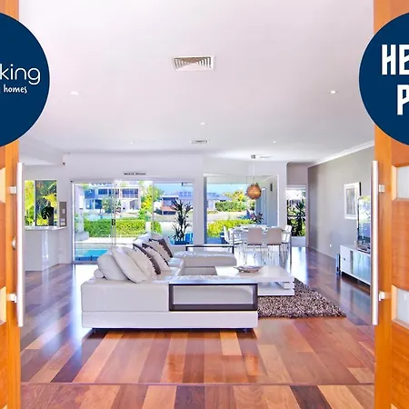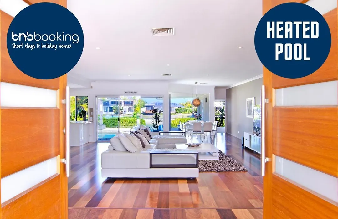 寝室3室のSeaclusion Waterfront Heated Spa And Pool ゴールドコースト ヴィラはカラーラ・スタジアムから4.3キロメートル離れた所離れた所に位置し、テラスを提供しています。